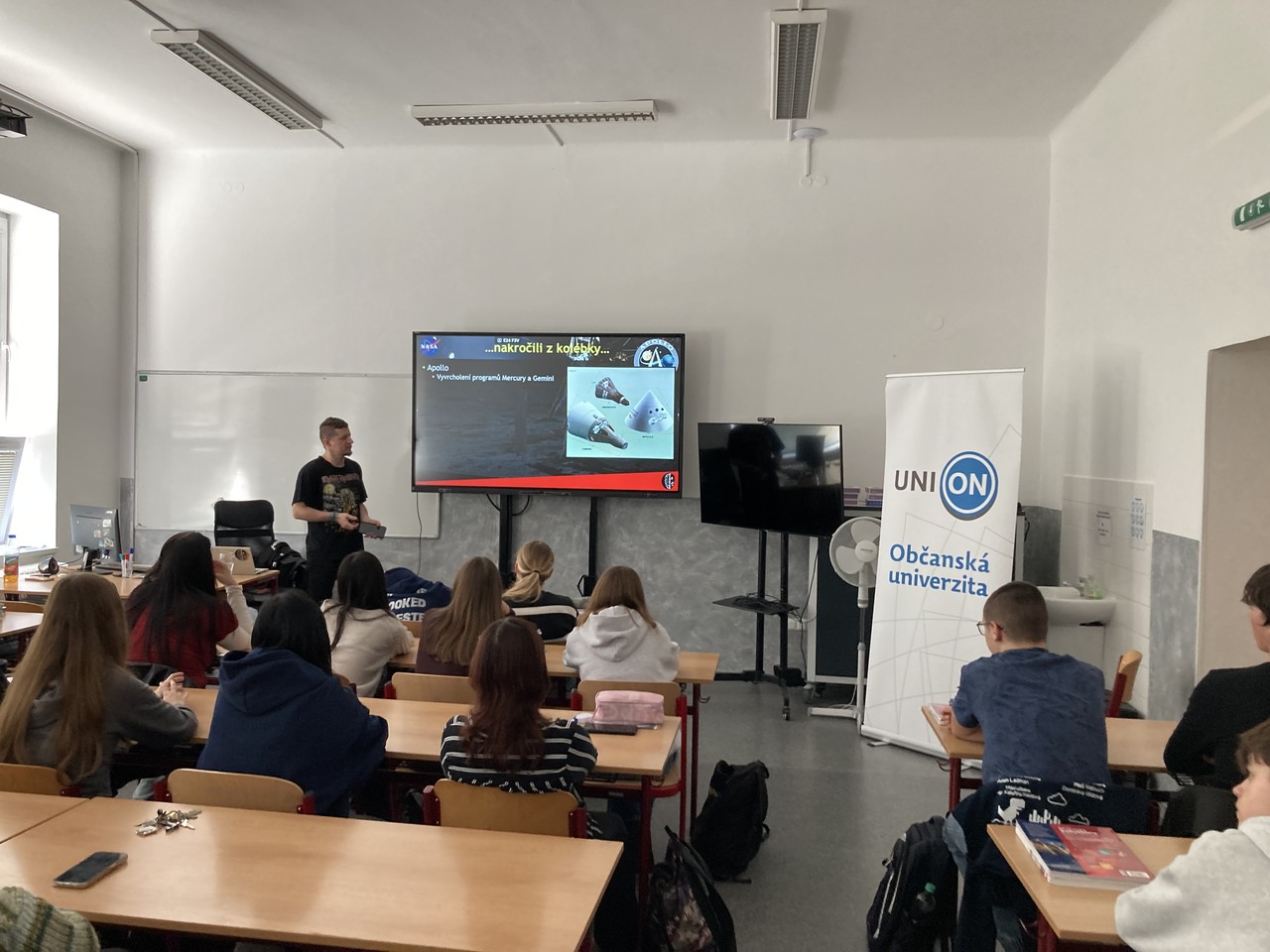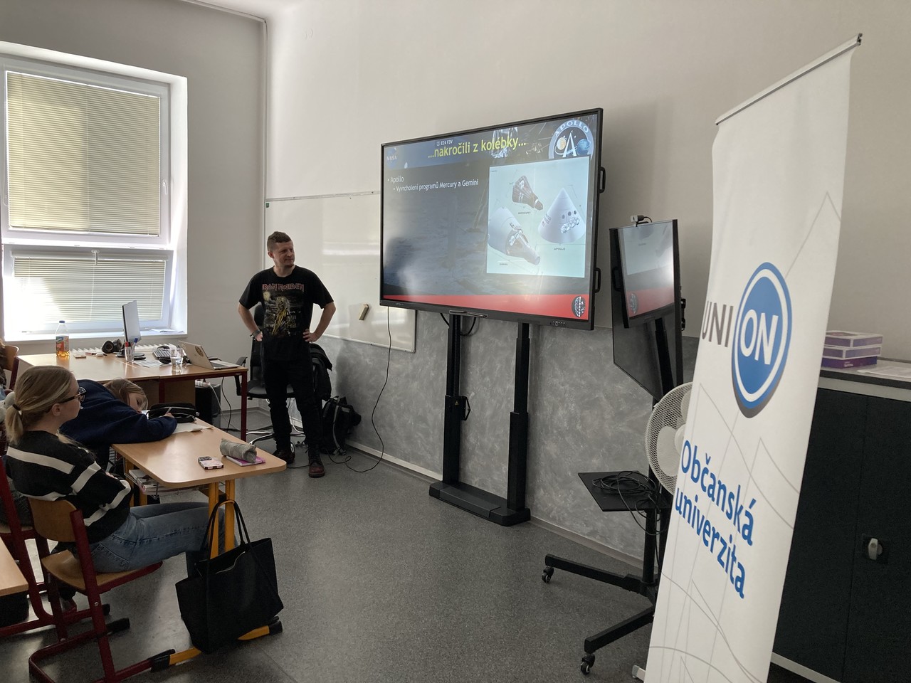 Dne 4. 11. 2025 v rámci projektu UniON proběhla přednáška Mgr. Jana Tomaštíka, Ph.D., ze Společné laboratoře optiky UP, s názvem „Dobývání kosmu lidstvem“, která nahlédla za hranice naší planety, až do kosmu. Přednášky se zúčastnili žáci Střední školy služeb v Olomouci.