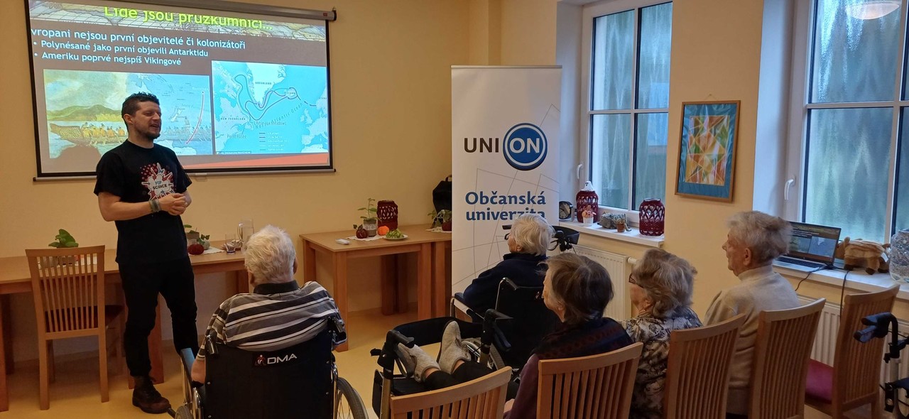 V rámci projektu UniON se dne 20. 11. 2025 klienti Domu seniorů František v Náměšti na Hané zúčastnili přednášky s názvem "Dobývání sluneční soustavy". Lektor Mgr. Jan Tomaštík, Ph.D. (alias Vědátor), ze Společné laboratoře optiky UP, si připravil velmi zajímavé téma. Lidstvo se na orbitě naší planety rozkoukalo už před více než půlstoletím a může se zdát, že o další dobývání kosmu ztratilo zájem a tempo. Možná je to však jen nádech a rozběh před dalším skokem, který bude znamenat aktivnější průzkum planet Sluneční soustavy, ale též komerční těžbu, a nakonec snad i setrvalou a udržitelnou kolonizaci. Nad tím, jak budou vypadat první kosmická města mimo planetu Zemi, se spolu se seniory zasnil Vědátor.