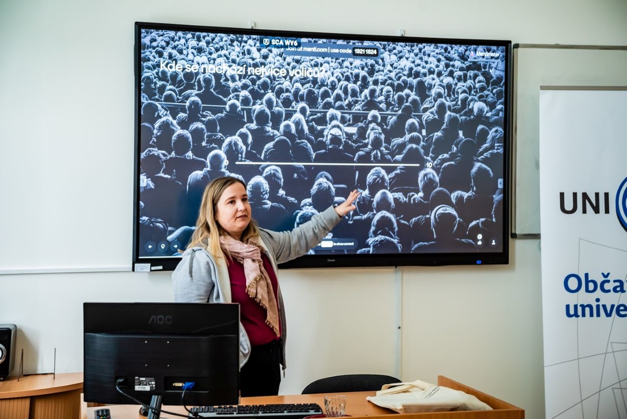 Lektorka Mgr. Daniela Ostrá, Ph.D., z Katedry politologie a evropských studií - Filozofické fakulty, přednáškou reflektovala, jak je dnes politika často zahlcena přehnanými sliby, populismem a mediálními střety, které mnohé voliče unavují a odrazují od aktivní účasti. Formou krátkých příběhů a metafor, podobných pohádkám, se žáci mohli zamyslet nad tím, jak rozpoznat skutečné hodnoty a motivace politiků i jak nepodlehnout manipulaci či rezignaci.